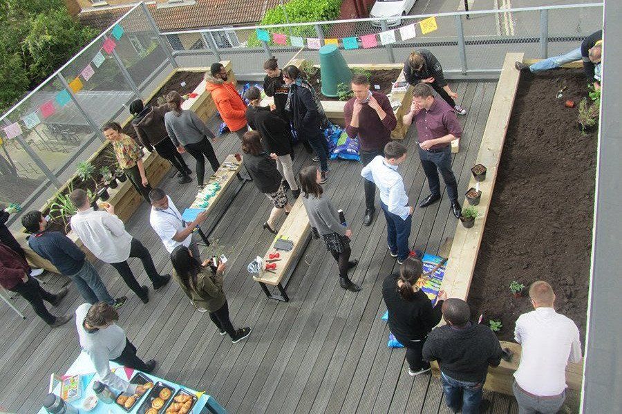 is a collaboration between Equalities Work and The Foundry to create a community garden. We also worked with young people from Roots & Shoots, a local horticulture initiative, who helped to create a number of raised beds that have now been planted up with flowers as well as fruit.